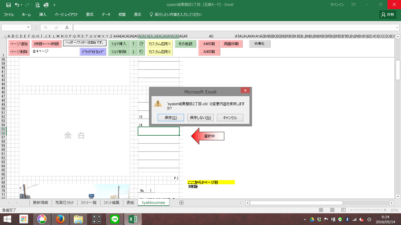 問題ではありませんが、作業終了時に×ボタン、閉じるでエクセルを