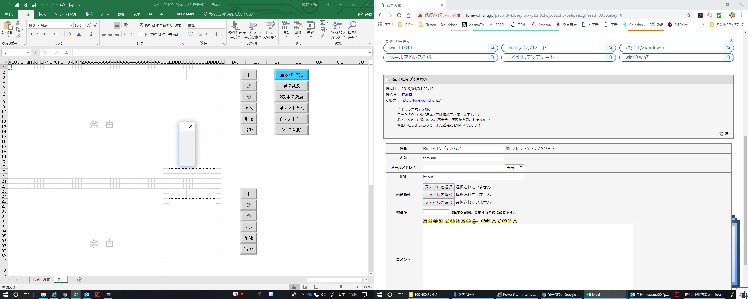このたび、win10にOS変更となり、「画像ドロップ窓」をクリックすると