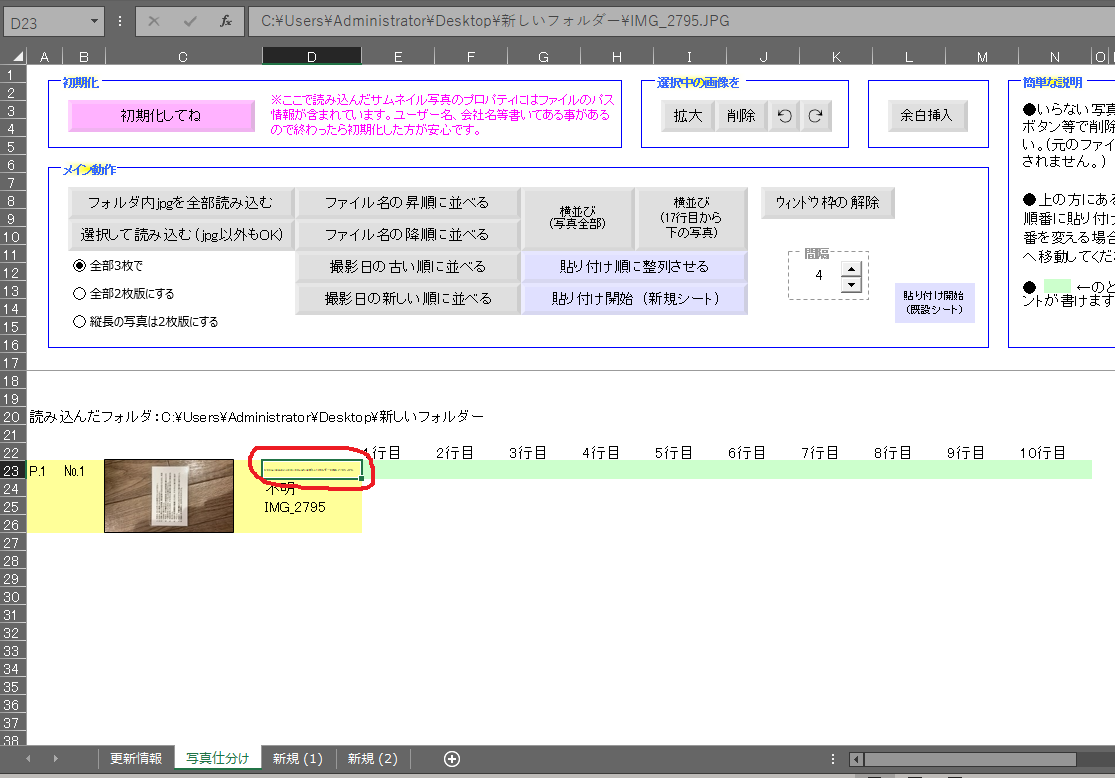 2021年頃の写真台紙はファイル名だけ表示していましたが、
